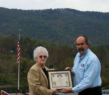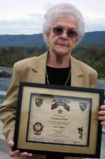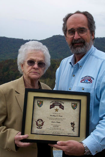 Steve Crabtree presents Louise Watts, mother of Bradley Watts, with her Life Membership to the 75th RRA as a Gold Star Mother. |